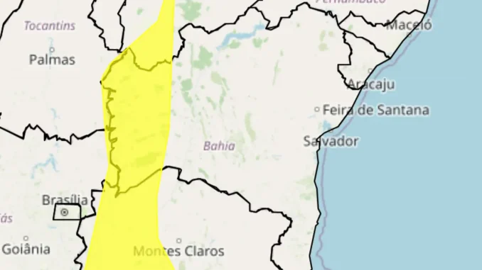 Tempestade com risco de granizo e ventos intensos motivou a emissão de um alerta amarelo do Inmet para 22 cidades do Oeste da Bahia nesta terça-feira (30). O aviso classifica o grau de severidade como perigo potencial e tem validade entre 13h e 23h59.