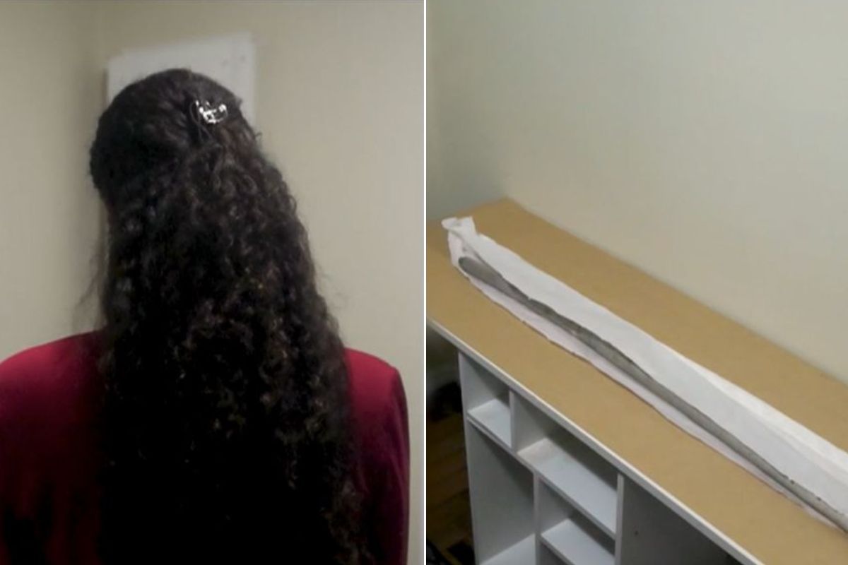 Uma professora afirma ter encontrado, na praia, uma haste de guarda-sol com marcas que considera suspeitas.